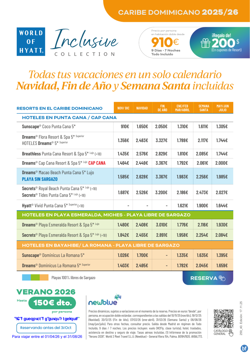 150€ Descuento Reservando antes del 31 Octubre. Promo verano Newblue/Hyatt Caribe Dominicano