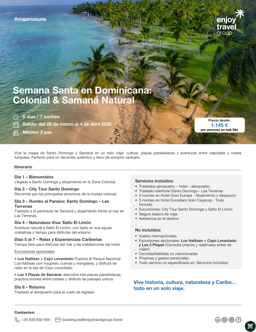 Semana Santa en Dominicana: Colonial & Samaná Natural desde 1.145€